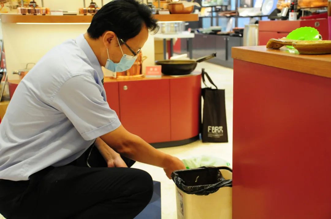 垃圾分类的顺利开展与稳步推进,离不开每一名职工的辛勤付出与不懈努力。走进燕莎商城燕莎店,物业安保部主管、垃圾分类监督员马超正乐此不疲地穿梭在员工餐厅、更衣间、办公区以及各楼层卖场,在各个区域内张贴垃圾分类宣传海报,并对员工的垃圾分类培训情况进行跟踪回访。他表示:“垃圾分类与安保同等重要,哪个也不能轻视。我要在垃圾分类中做一些力所能及的事情,助力企业绿色发展。”