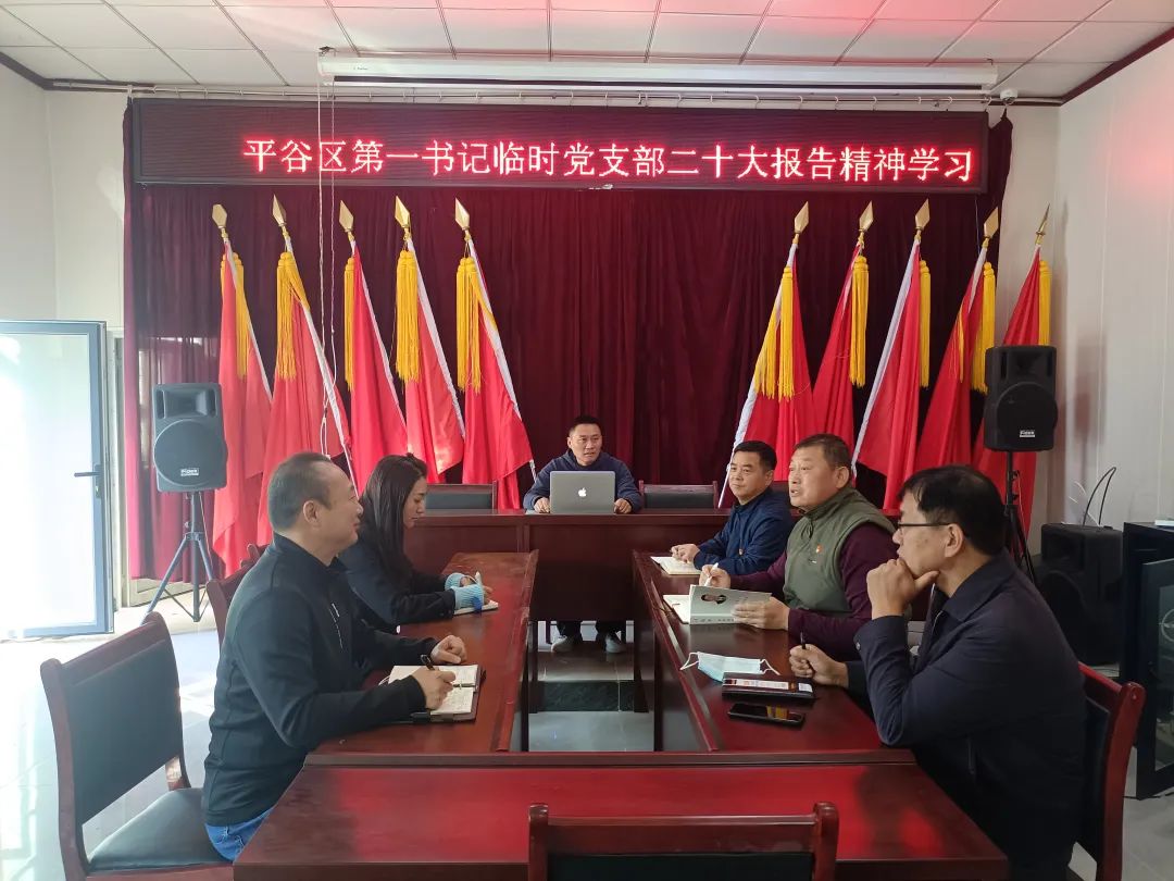 日前,国企派驻平谷区第一书记临时党支部以党小组会的形式,分别在金海湖镇海子村、山东庄镇桃棚村党建活动室等地组织开展党的二十大精神专题学习。
