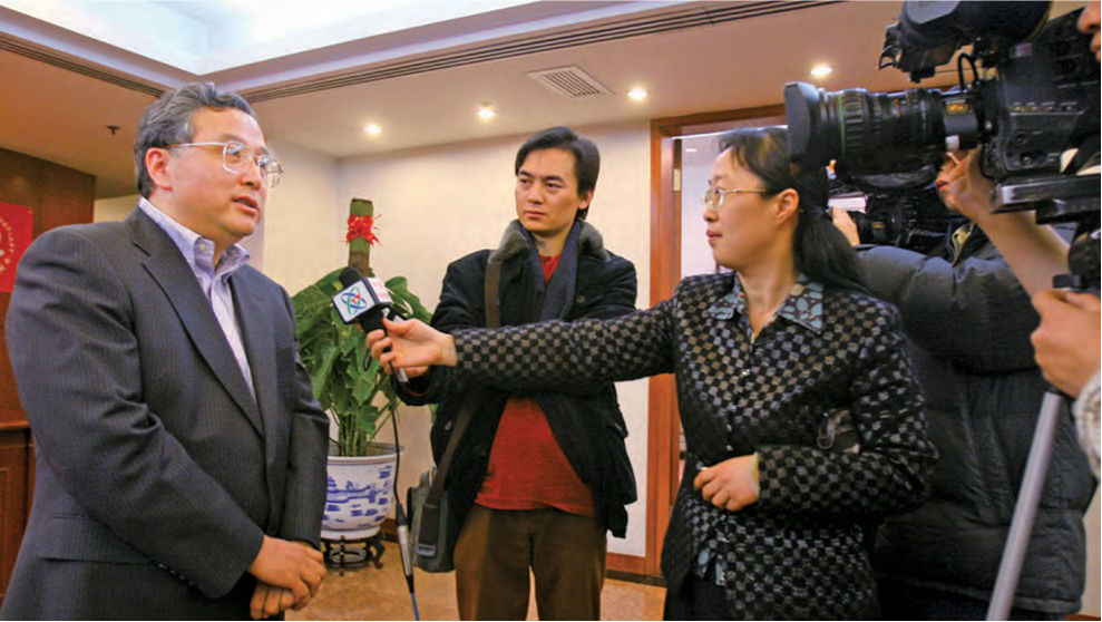 集团总部为抗击地震灾害捐款, 党委副书记、总经理刘毅接受央 视采访